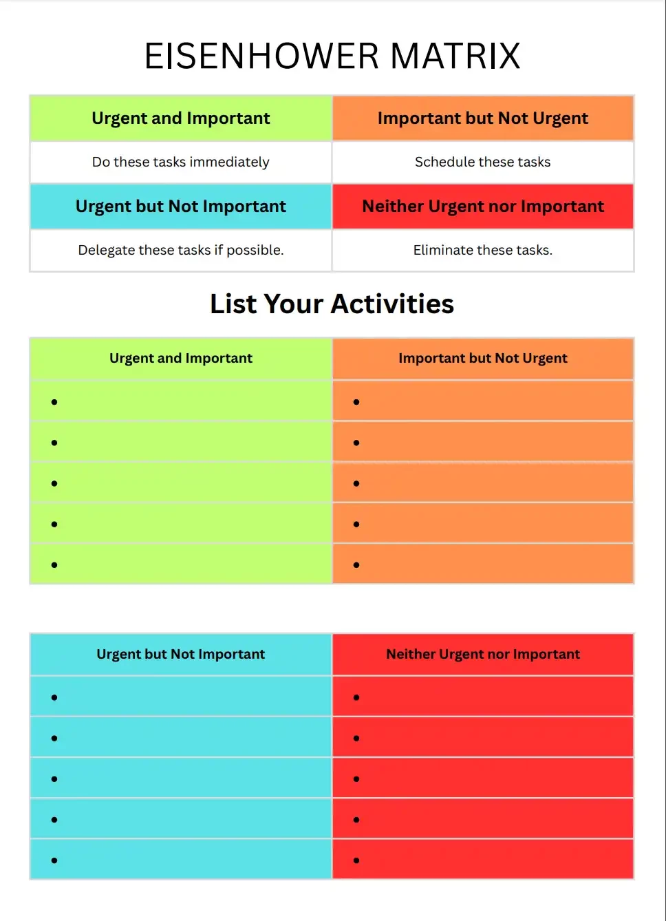 - Neither Urgent nor Important: Eliminate these tasks.