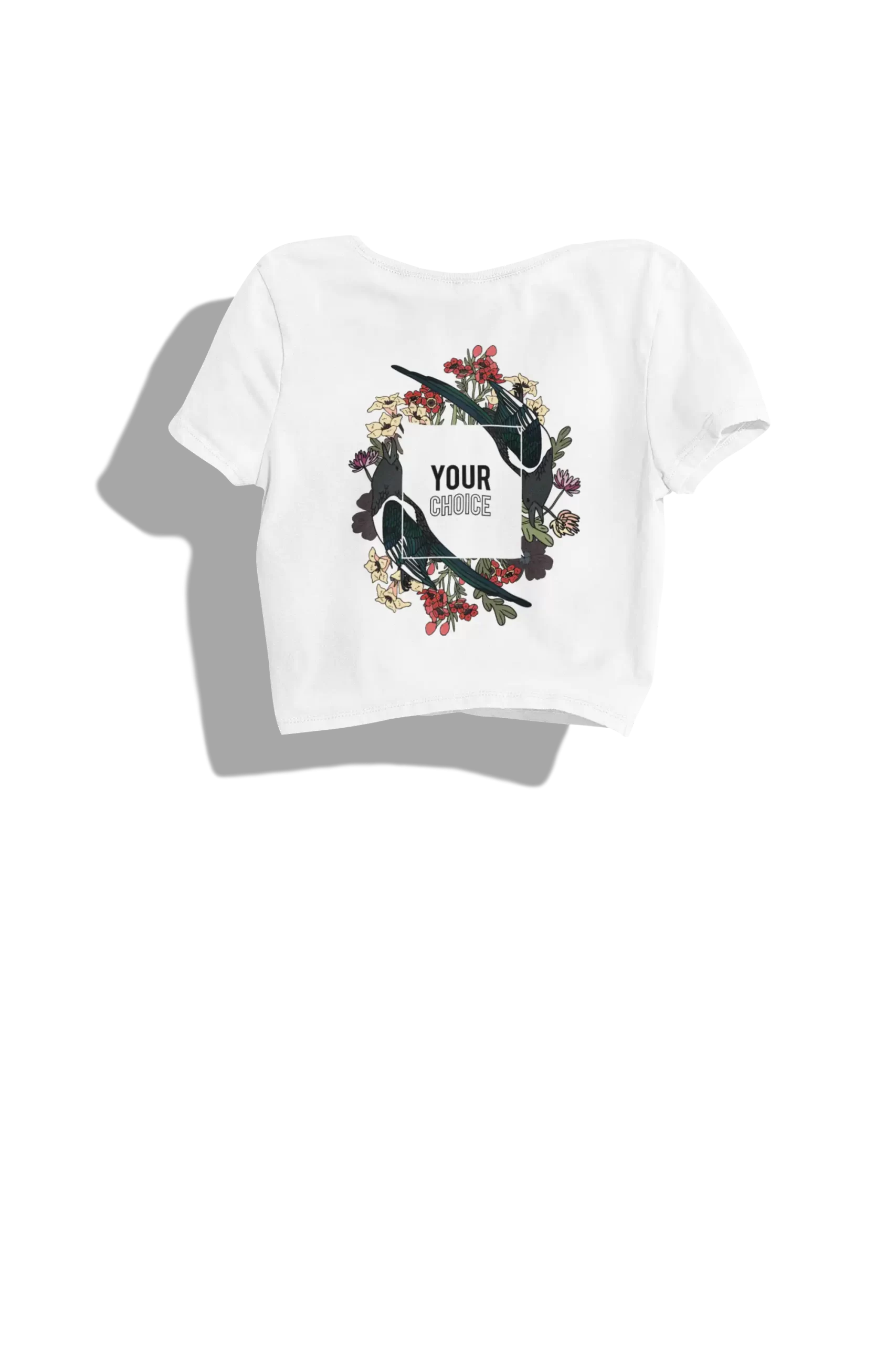 The “Your Choice” crop top features a double-stitched hem for a polished, clean look that adds strength to the overall design. Its modern cropped fit creates a trendy silhouette, perfect for pairing with high-waisted jeans, skirts, or shorts. Whether you’re going for a laid-back, chic look or something more active, this crop top is versatile enough to match your style.