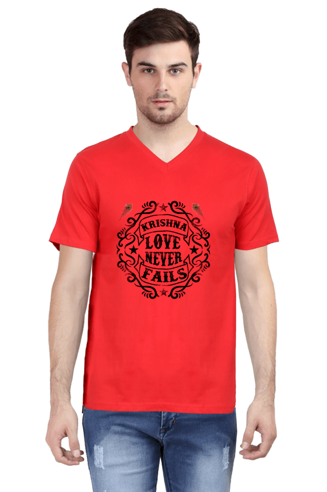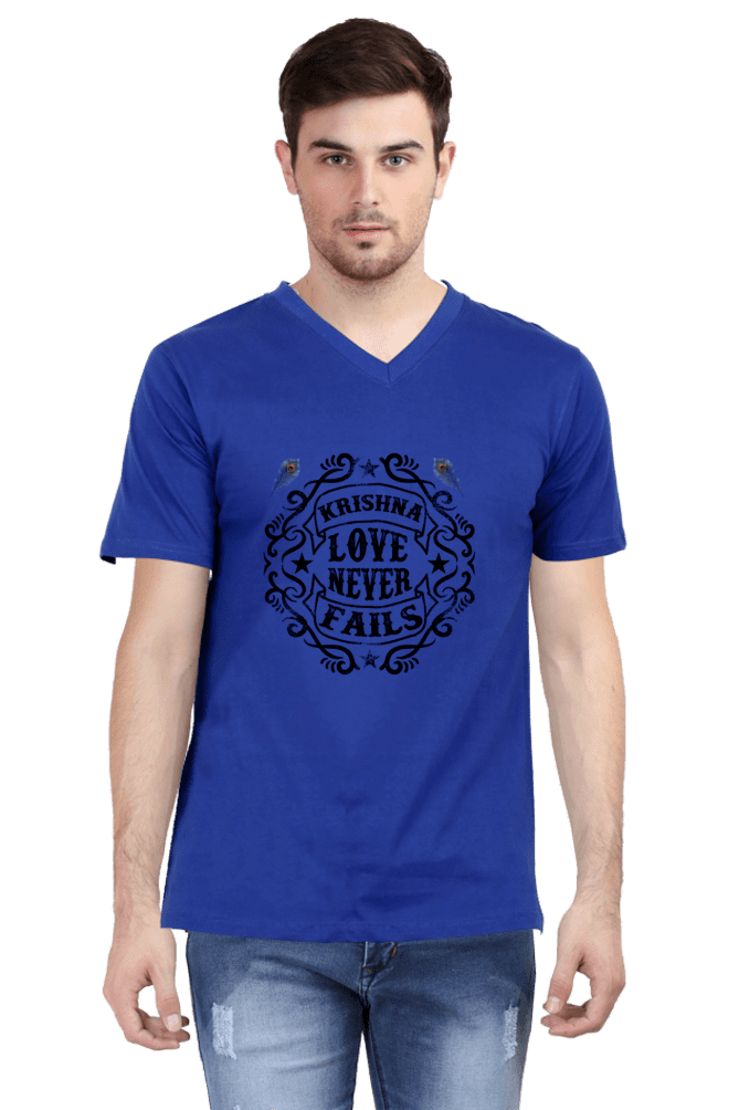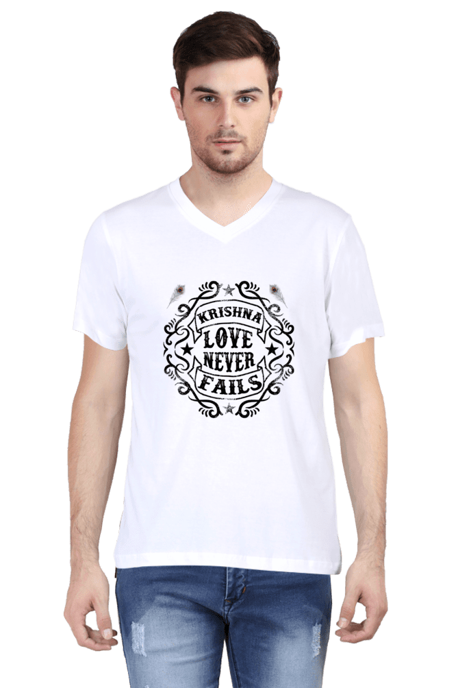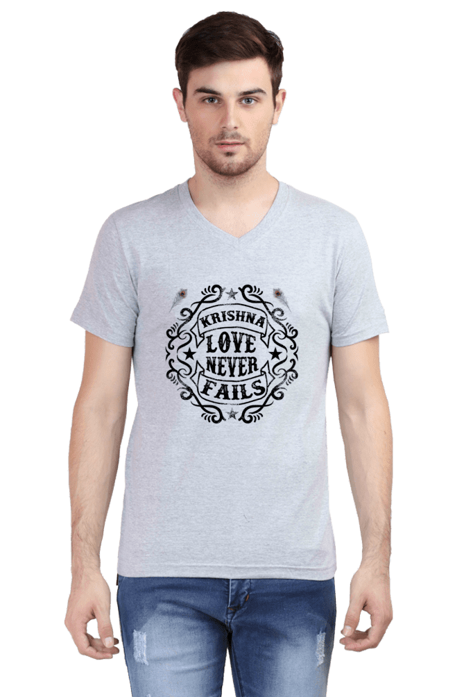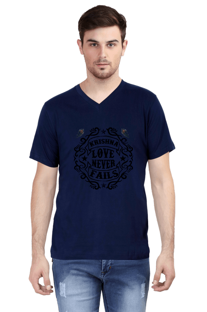 Experience Divine Comfort with VIBHAN’s Male V-neck Half Sleeve – “Krishna’s Love Never Fails”