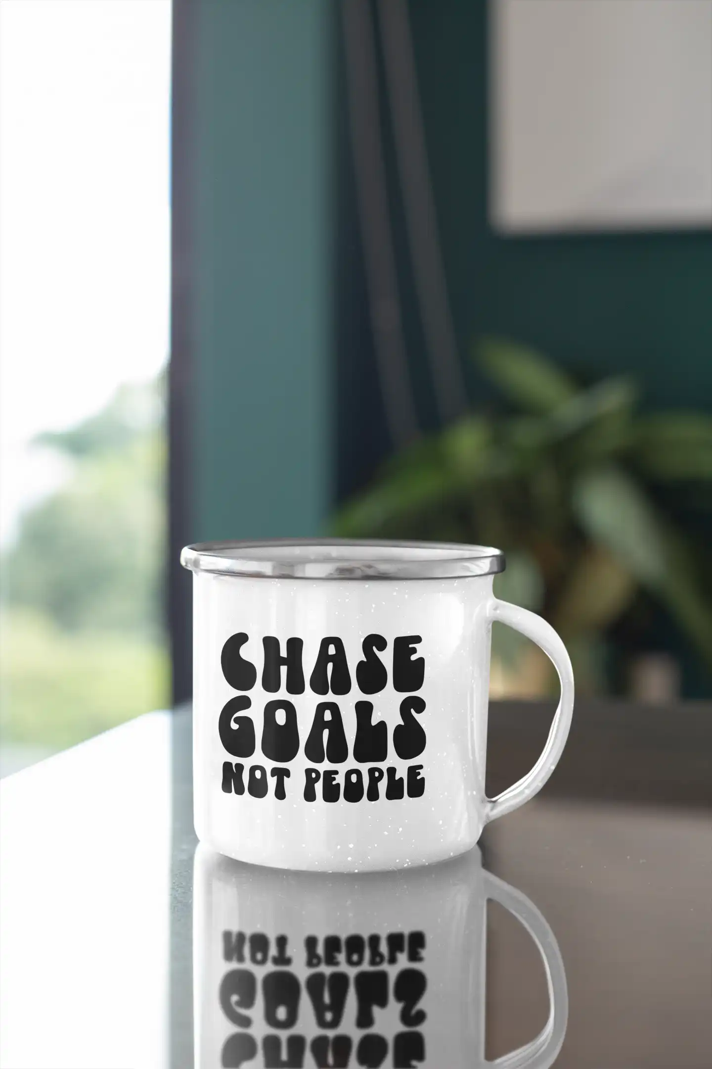 Elevate Your Motivation with VIBHAN’s “I Chase Goals, Not People” Motivational White Enamel Mug