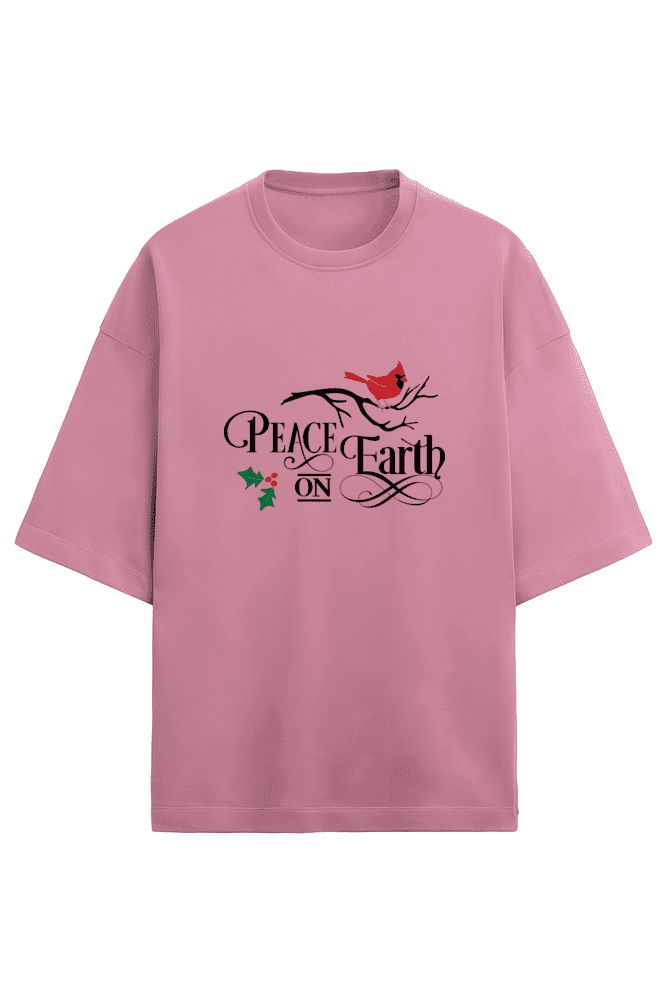 Experience peace and comfort like never before with VIBHAN’s “Peace on Earth” Unisex Oversized T-Shirt. Shop now and spread positivity wherever you go.