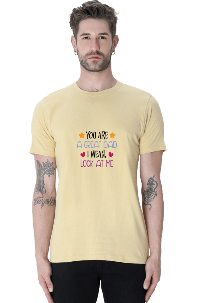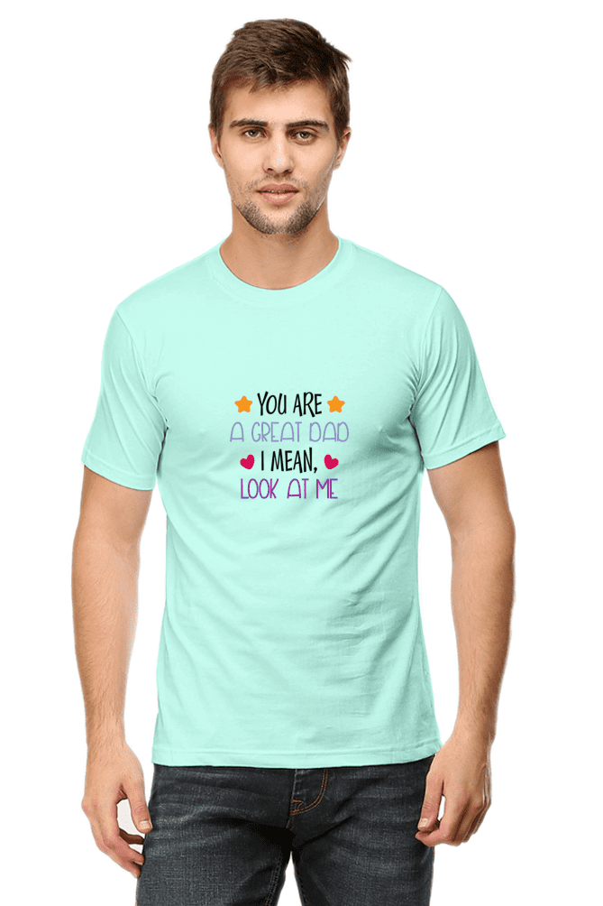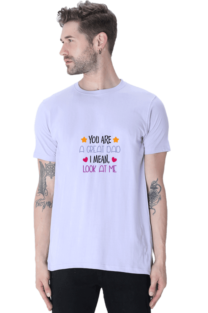 Celebrate Fatherhood with VIBHAN’s Male Round Neck Half Sleeve Classic – “You are a great dad I mean look at me”