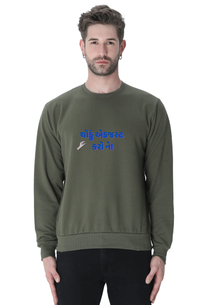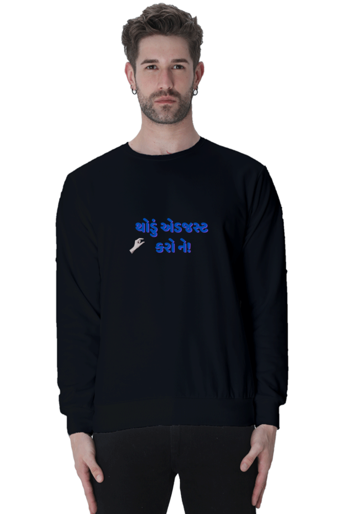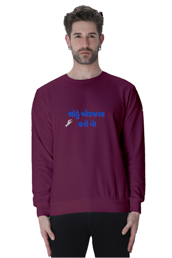 Add a touch of humor to your wardrobe with VIBHAN’s “Thodu Adjust Karne” Unisex Sweatshirt today!