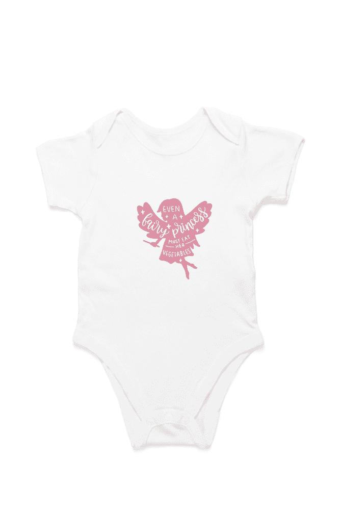 Playful and Inspiring: The delightful message, Even a fairy princess must eat her vegetables,? adds a dose of fun to your baby’s attire. It’s a cute reminder to nurture healthy habits and a love for veggies, even in the most enchanting of little princesses.