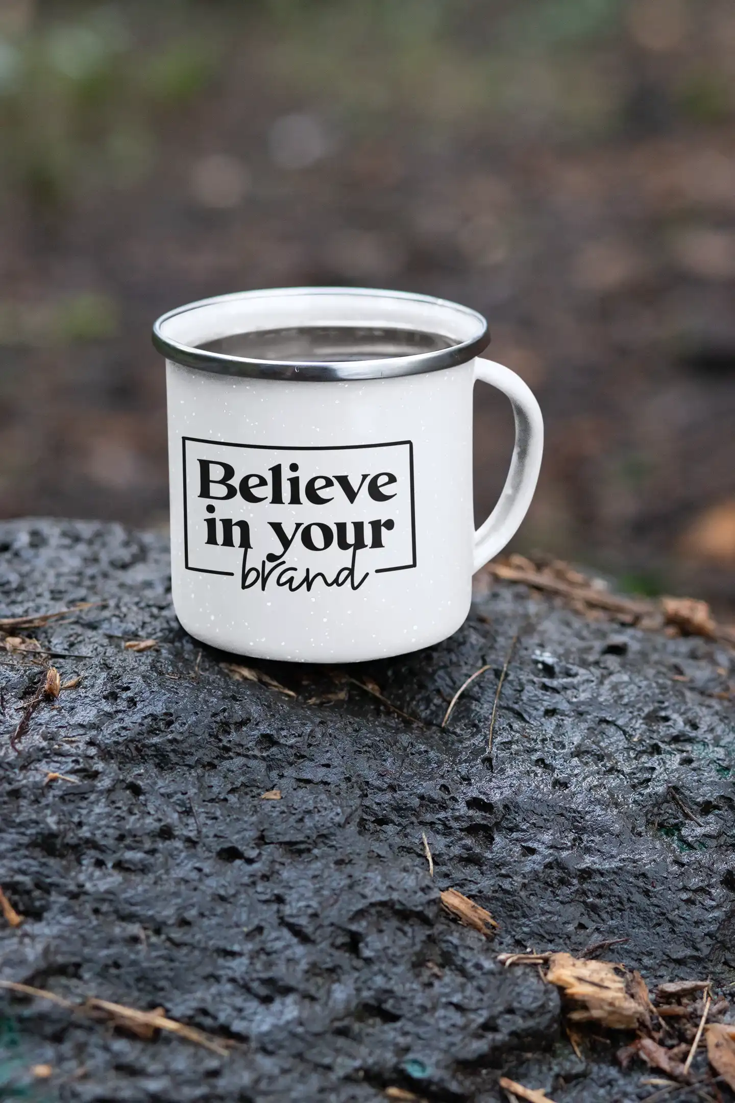 Celebrate your journey and achievements with us! Enjoy a 10% discount on your first purchase with the code WELCOME at checkout. Bring home the “Believe in Your Brand” Enamel Mug today and keep your inspiration close at hand.
