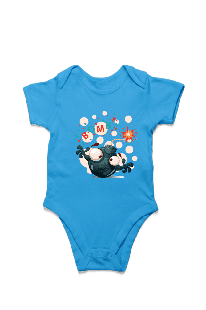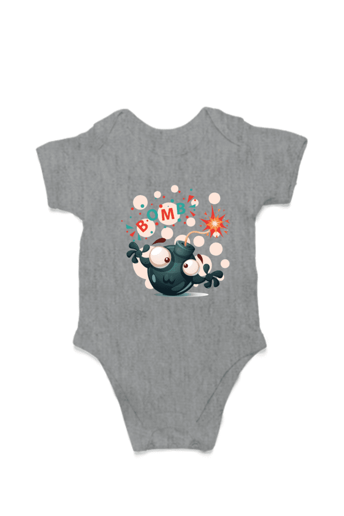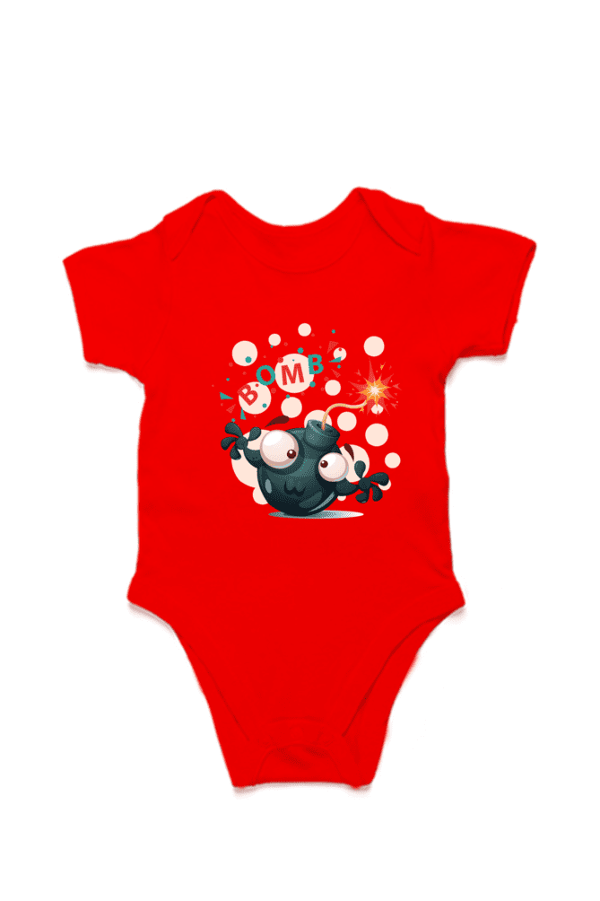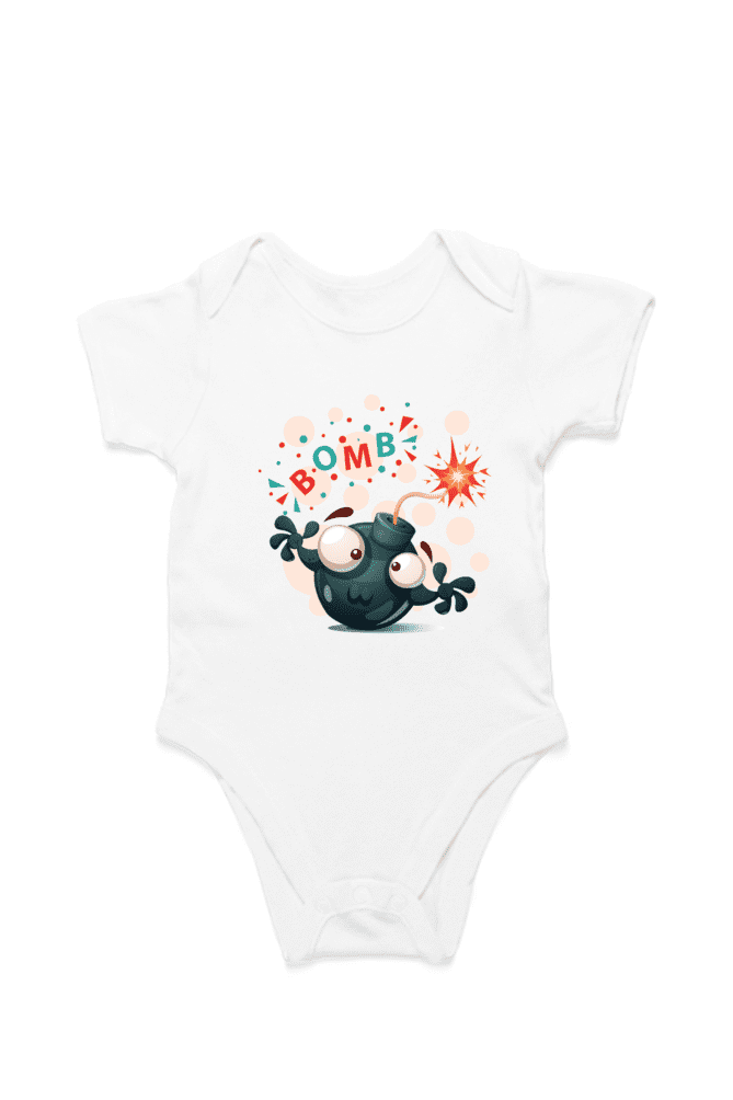 Playful and Bold Design: Featuring the eye-catching ‘Bomb’ print, this romper adds a burst of personality to your baby’s outfit. It’s perfect for little ones who are ready to make a statement, even before they start talking.