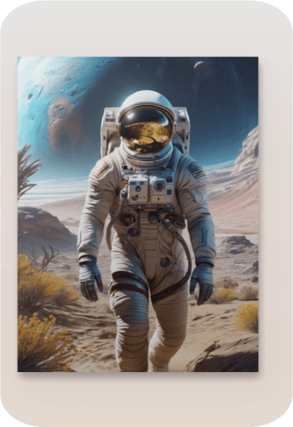 - Futuristic Design: Showcasing a space explorer on a vibrant alien planet.