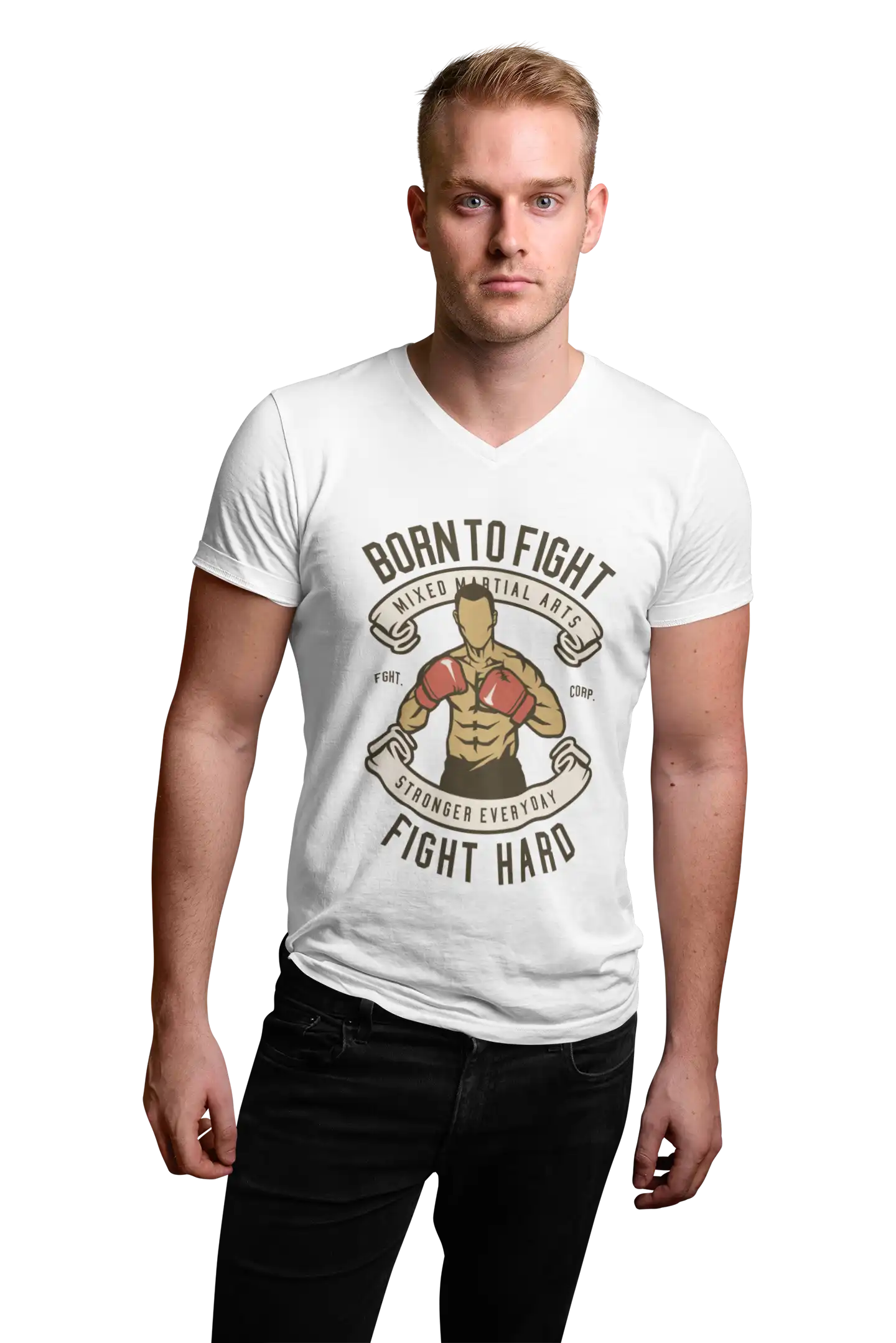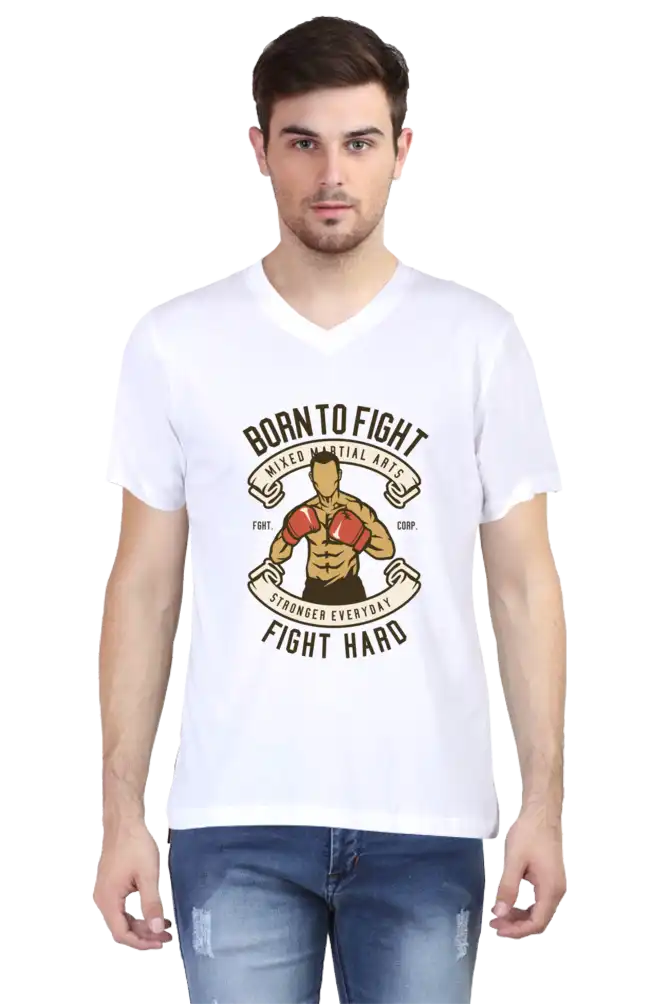 VIBHAN’s V-Neck Tee Born To Fight – Embrace Your Inner Fighter